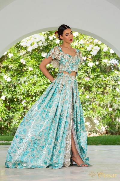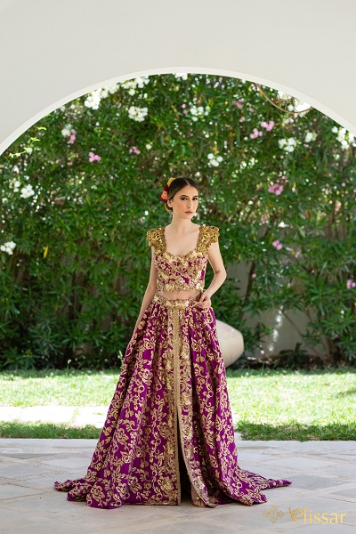 Elissar a revisité la Keswa traditionnelle auparavant appelée « Jebba qsira wu serwal bel-Kabbus » faisant d’elle un ensemble léger à porter, confortable pour la mariée qui pourra profiter de sa soirée. La Keswa Elissar est faite pour que la mariée soit resplendissante et bien dans sa peau le soir de sa outeya ou de son mariage.